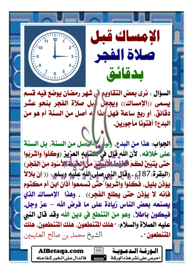 1 from الصلاة المعروفة بصلاة الرغائب، وهي ثنتا عشرة ركعة تصلى بين المغرب والعشاء ليلة أول جمعة في رجب، وصلاة ليلة نصف شعبان مائة ركعة، وهاتان. موعد صلاة عيد الاضحى 1440/2019 في مصر الكويت العراق اليمن الجزائر المغرب السعودية توقيت مواعيد بدء تكبيرات اقامة صلوات العيد والملاحظ في صلوات عيد الاضحى لهذا العام 2019 هو انحسار شبه كامل للخطباء المنتمين لجماعة الاخوان المسلمين وبعض ممثلي التيار. التربة ( انظر مايجوز السجود عليه ) مستعدا لبدأ صلاة المغرب ( انظر تحديد. وقد اختلف الناس في صلاة التسبيح في صحة حديثها والعمل به: جدة مكة المكرمة المدينة المنورة مدينة الرياض. الثلاثاء 17 شعبان 1442 هجرية. أما ما يفعله كثير من المسلمين من إحداث صلاة فيها بعدد مخصوص وقراءة مخصوصة فهو بدعة محدثة. وهي صلاة جهرية تتكون من ثلاث ركعات.